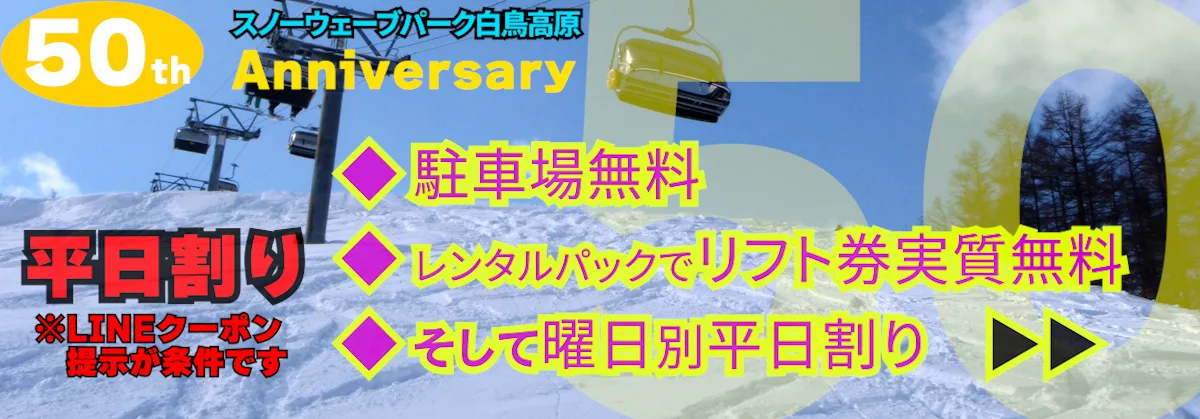 50周年記念LINEクーポン配信中! 平日が超お得!