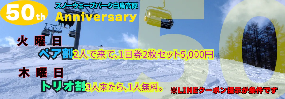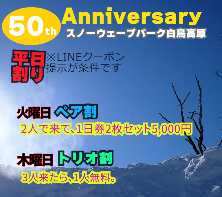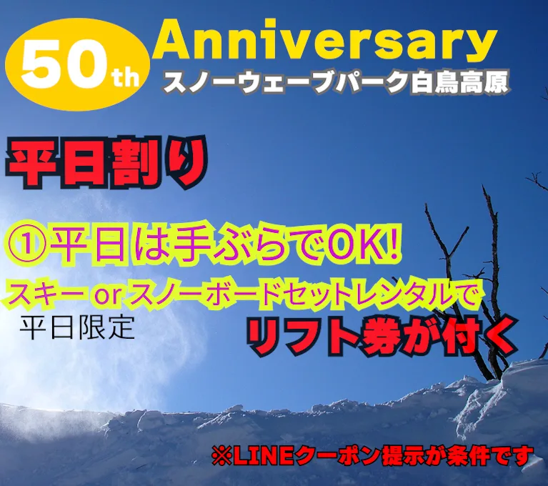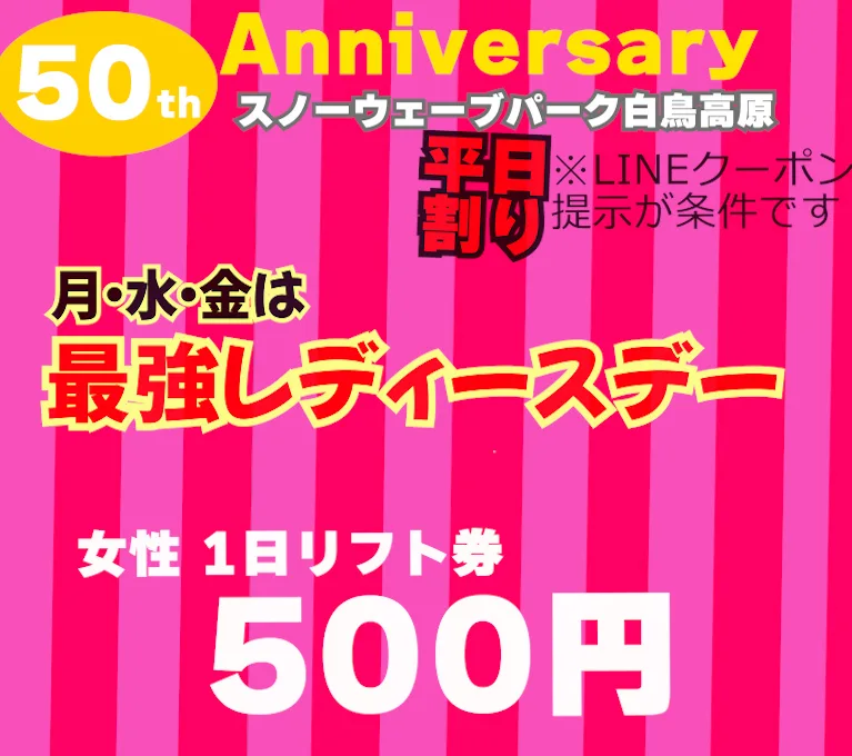 50周年最強平日LINEクーポンシーズン終了まで延長!LINEお友達追加でお得なクーポンGet!
